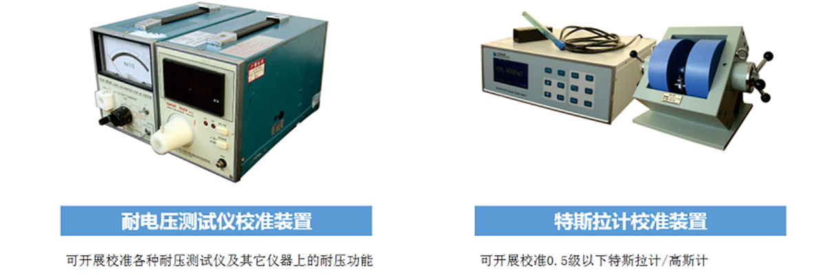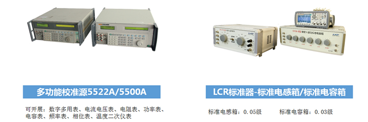 數(shù)字多用表、模擬式多用表、功率表、標(biāo)準(zhǔn)電磁、多功能校準(zhǔn)器、直流電位差計(jì)、電阻、交流阻抗和集總參數(shù)阻抗標(biāo)準(zhǔn) 電容電感、Q表、電源、電子負(fù)載、高壓、靜電參數(shù)、電快速脈沖群發(fā)生器、電浪涌發(fā)生器、互感器。