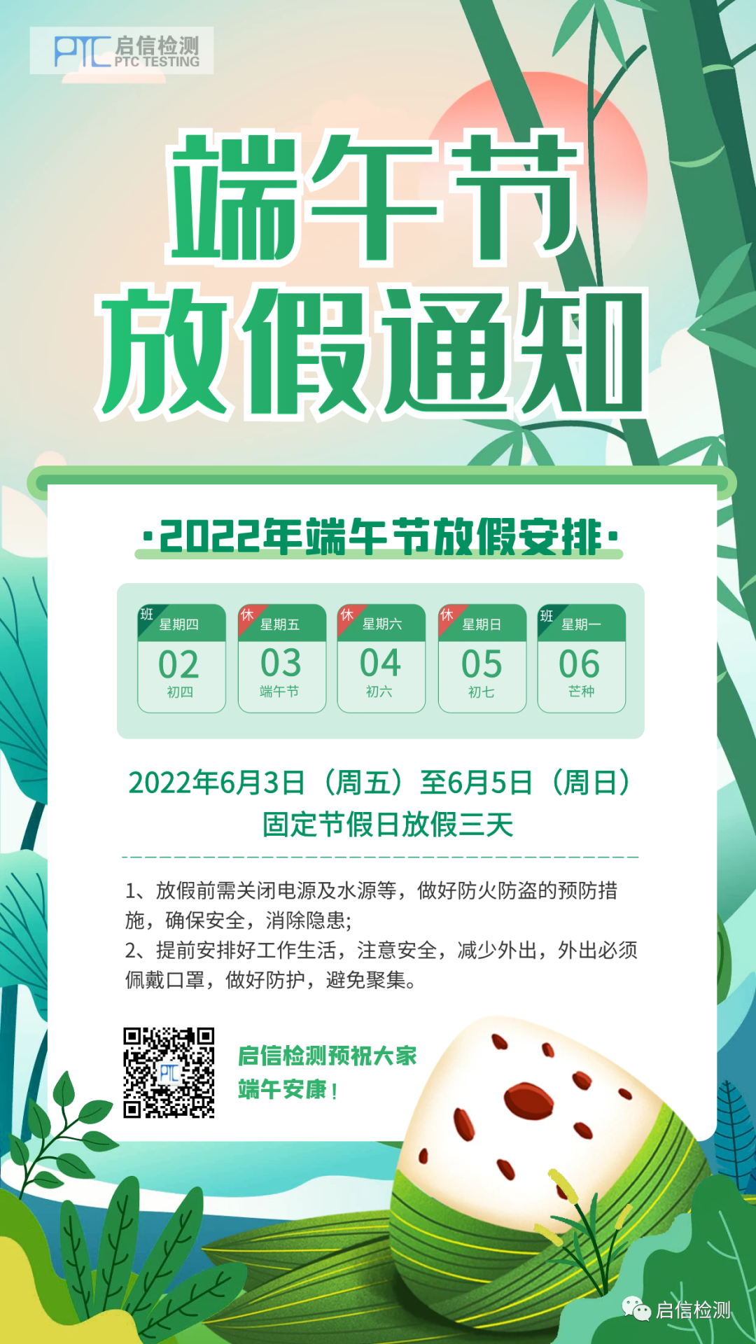 根據(jù)國家法定節(jié)假日的相關(guān)規(guī)定,我司2022年端午節(jié)假期安排如下: