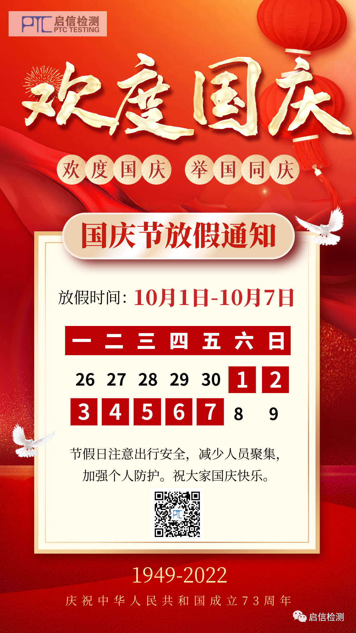 節(jié)假日注意出行安全,盡量減少人員聚集,加強(qiáng)個(gè)人防護(hù)。祝大家國慶快樂!
