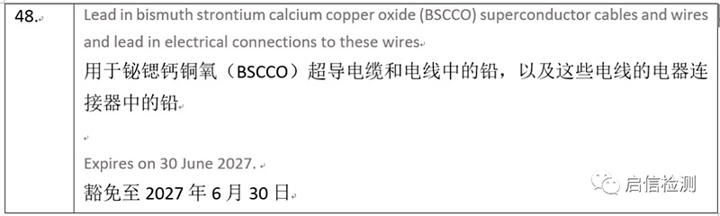 (EU) 2022/1631指令中提到在高溫超導(dǎo)材料BSCCO中添加鉛提供了不使用鉛無法獲得的技術(shù)和功能優(yōu)勢,這些技術(shù)和功能優(yōu)勢使醫(yī)療診斷或研究和創(chuàng)新的圖像分辨率更高,并允許相關(guān)應(yīng)用程序有更穩(wěn)定的運(yùn)行;而且當(dāng)前以及相當(dāng)長一段時間內(nèi),都沒有可以替代的材料。具體的條款內(nèi)容如下: