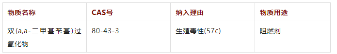 雙(a,a-二甲基芐基)過氧化物具有“生殖毒性(第57(c)條)”危害屬性,主要用于高分子材料的硫化、交聯(lián)、固化以及作為阻燃添加劑等。此外,過氧化二異丙苯的生產方法涉及多個化學步驟,包括還原、縮合等過程,主要原料包括過氧化氫異丙苯、亞硫酸鈉和高氯酸等。