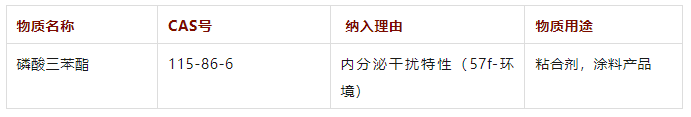 另外一種磷酸三苯酯(TPhP)目前仍處在評議過程中,暫時未被納入候選物質清單