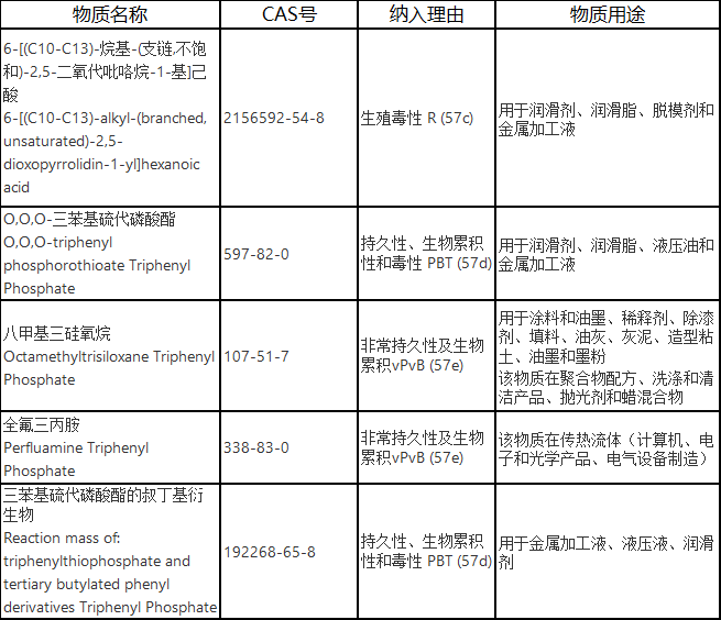 新增物質(zhì)清單如下: